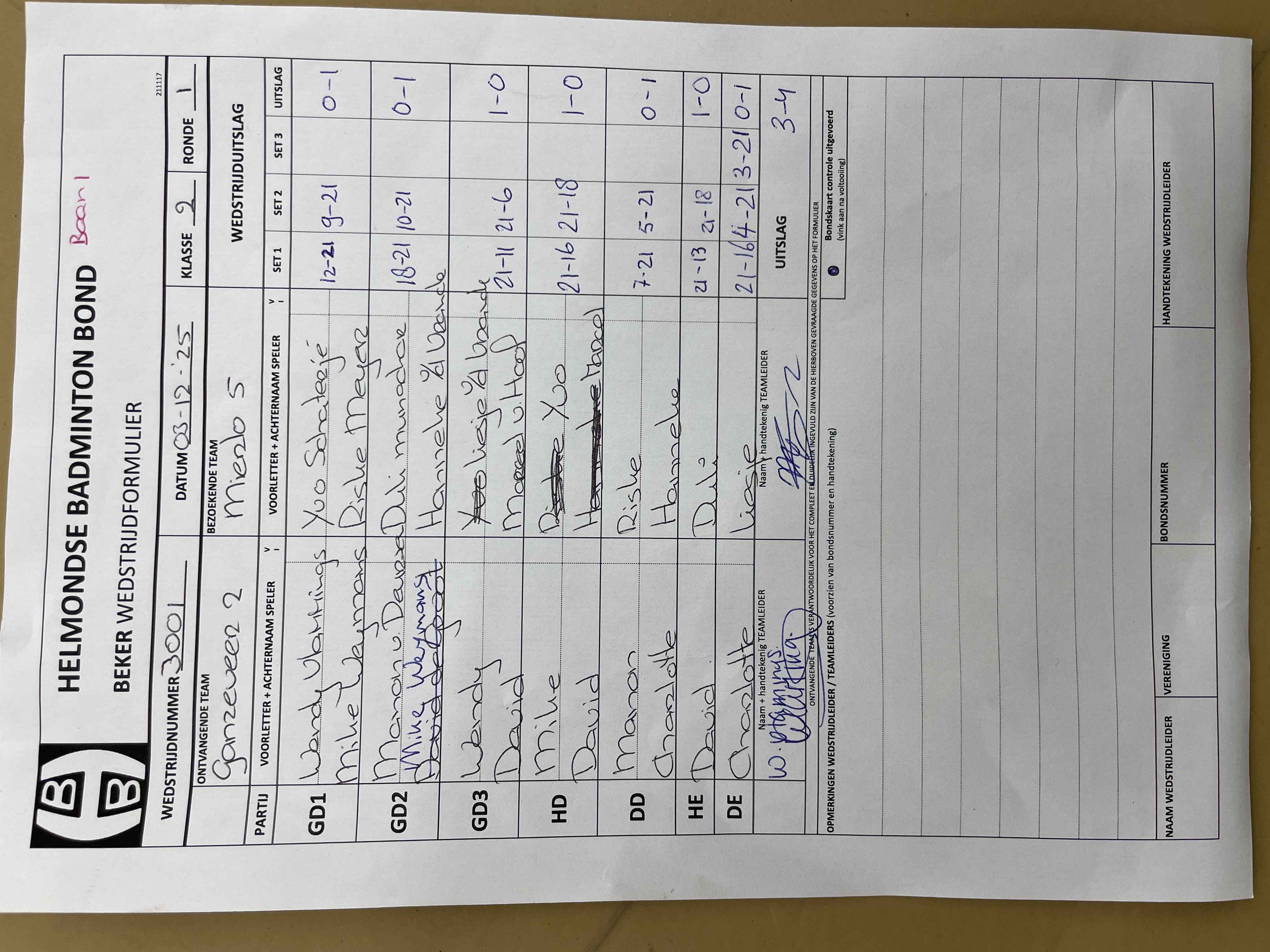 | 3001 | wo. 03-12-2025 | Ganzeveer 2 | - | Mierlo 5 | 1 | - | |||