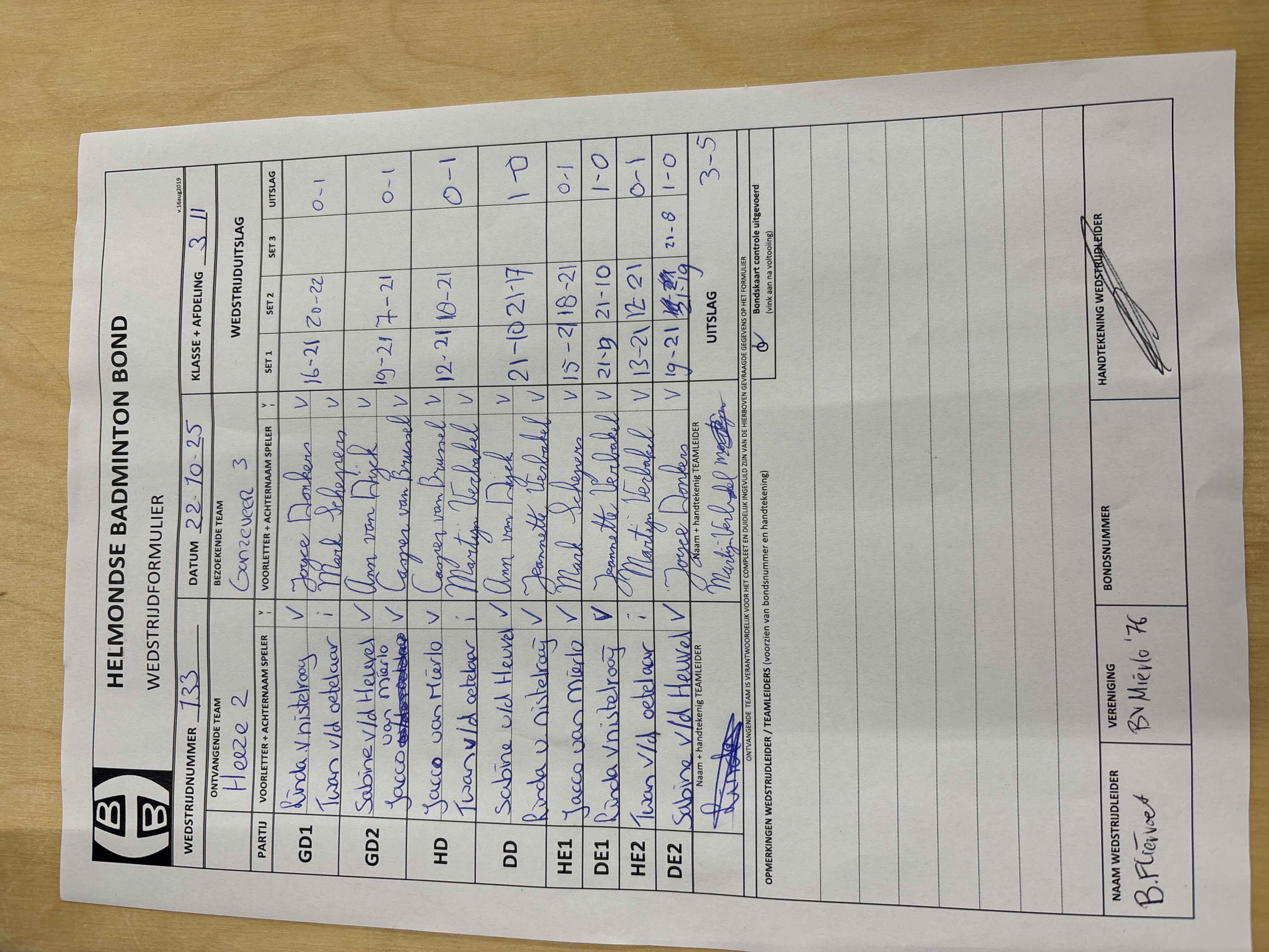 | 133 | wo. 22-10-2025 | Heeze 2 | - | Ganzeveer 3 | 14 | 3 - 5 | |||