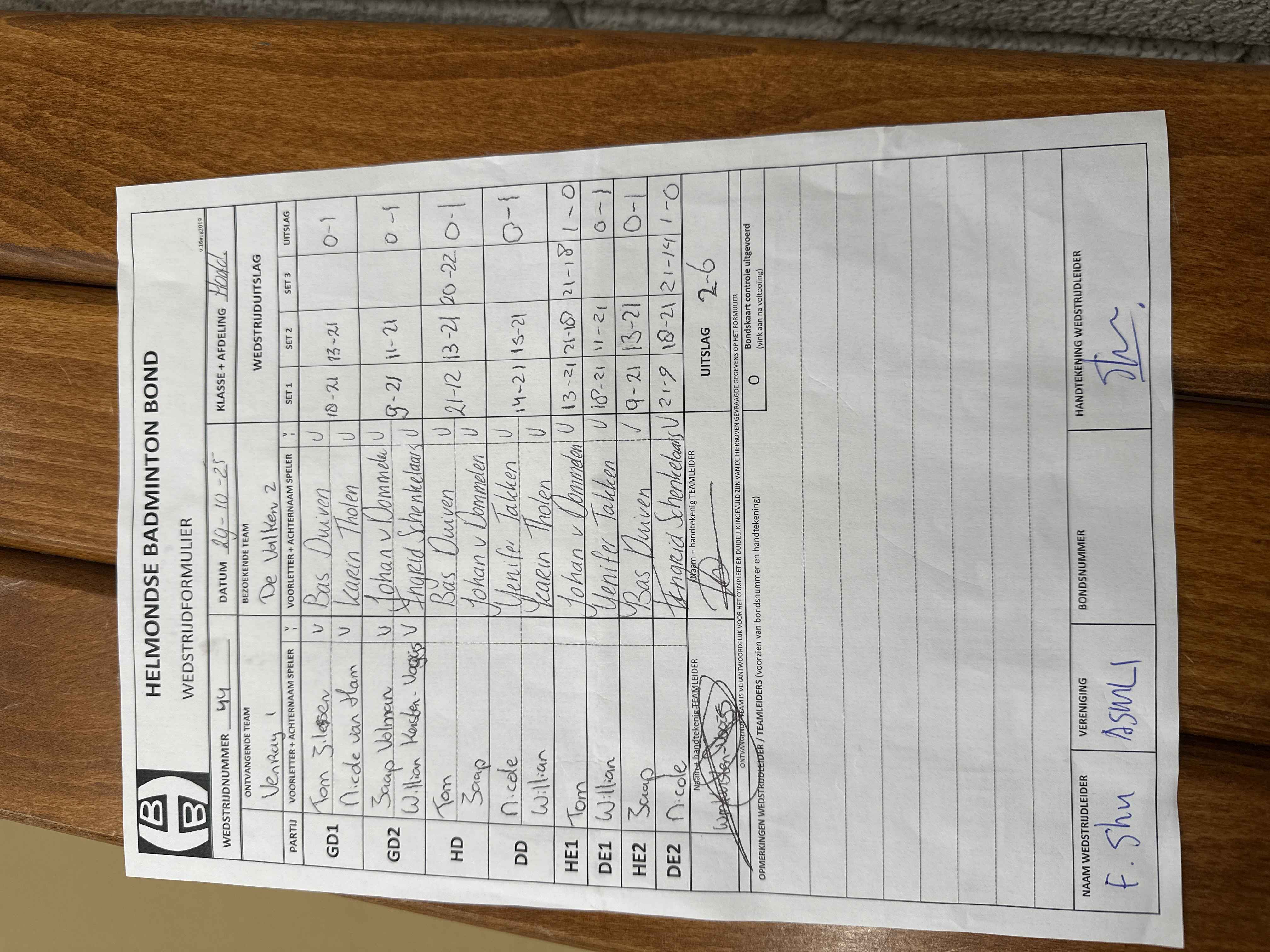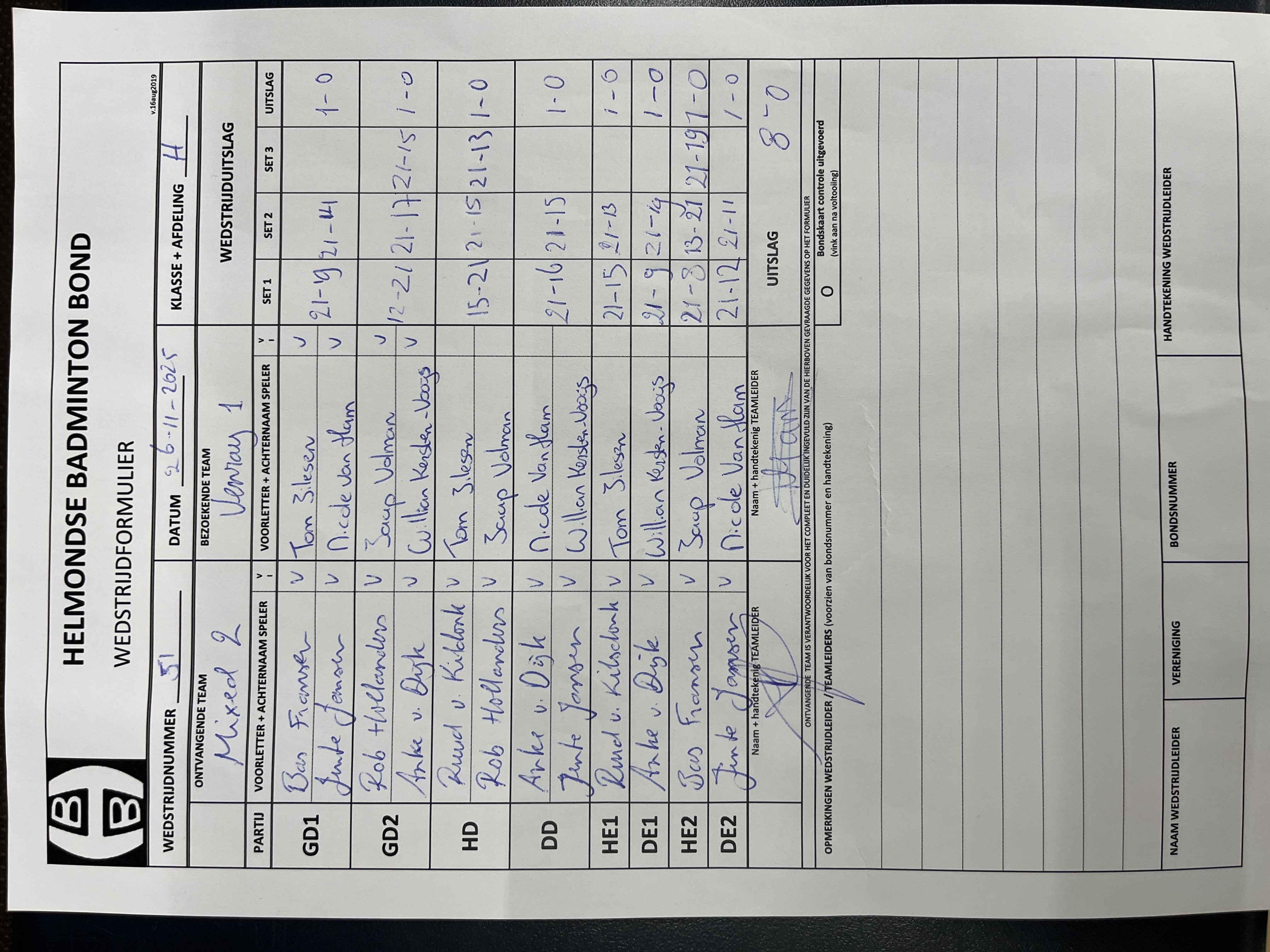 | 51 | wo. 26-11-2025 | Mixed 2 | - | Venray 1 | 3 | - | |||