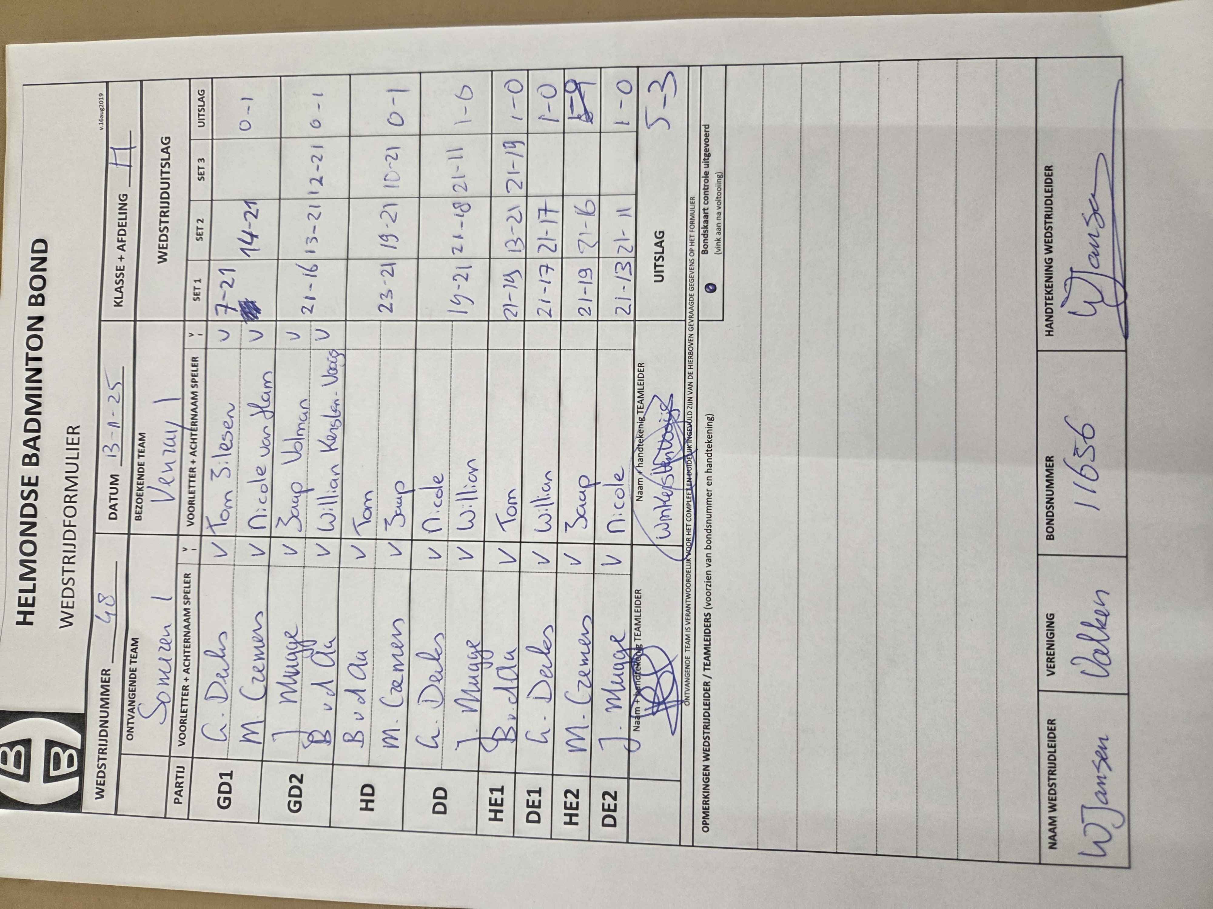| 48 | do. 13-11-2025 | Someren 1 | - | Venray 1 | 1 | - | |||