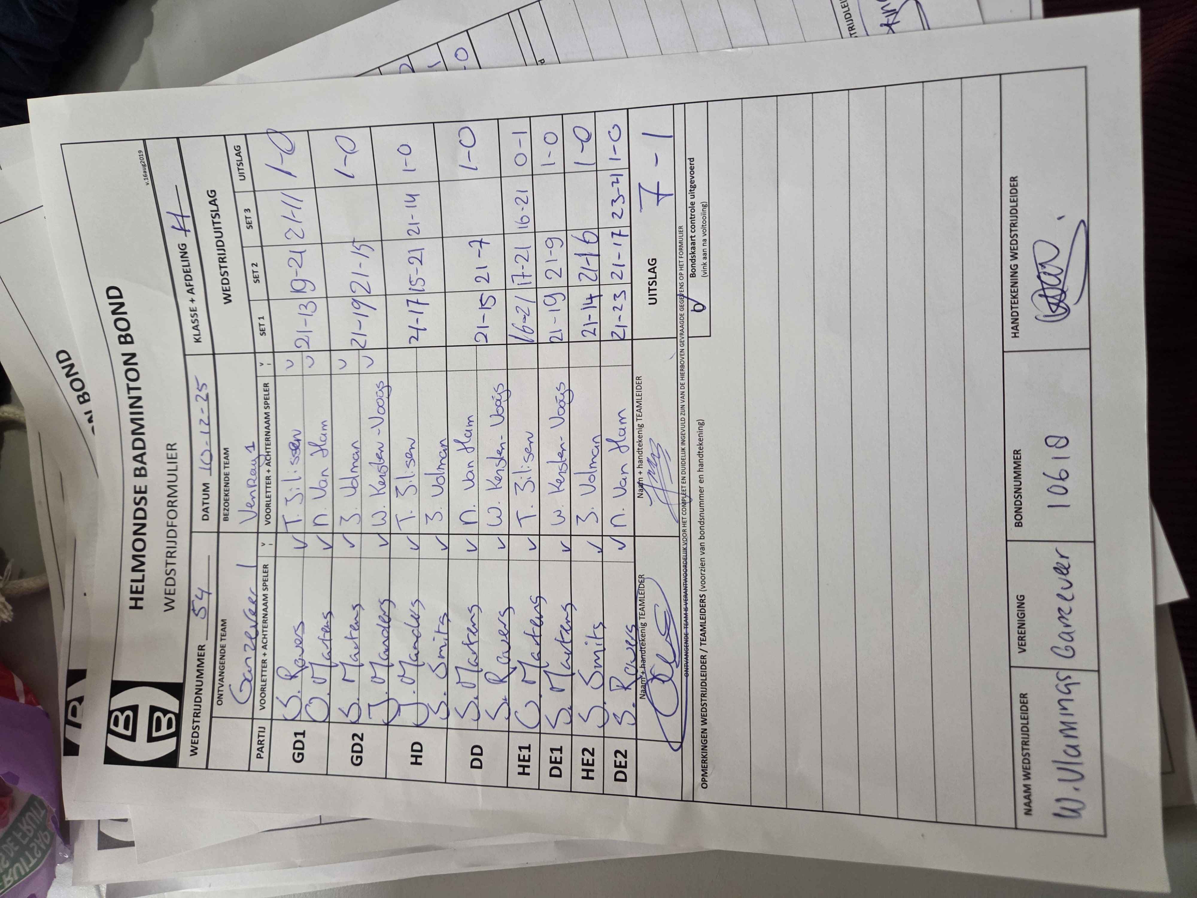 | 54 | wo. 10-12-2025 | Ganzeveer 1 | - | Venray 1 | 15 | - | |||
