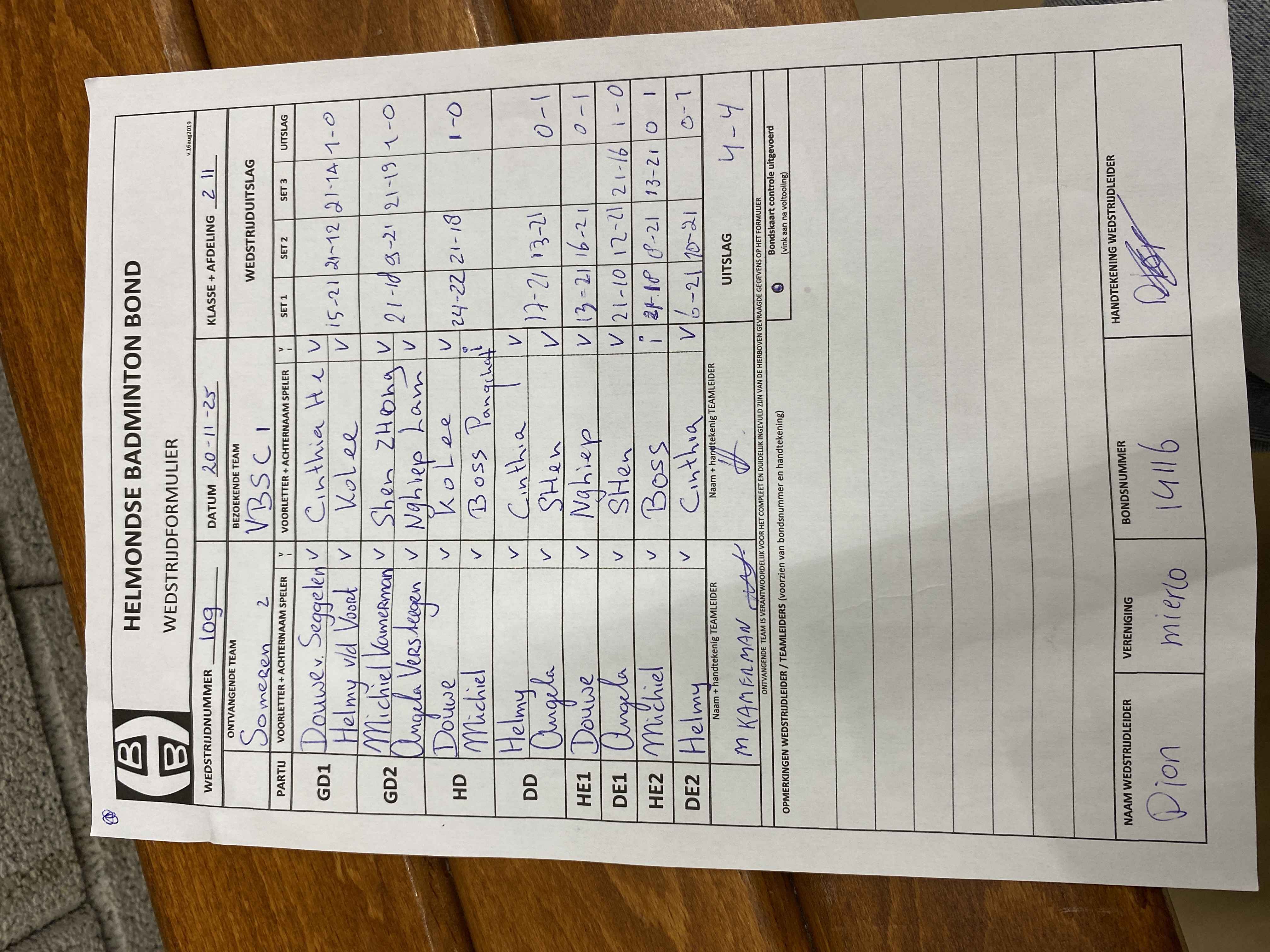 | 109 | do. 20-11-2025 | Someren 2 | - | VBSC 1 | 15 | - | |||