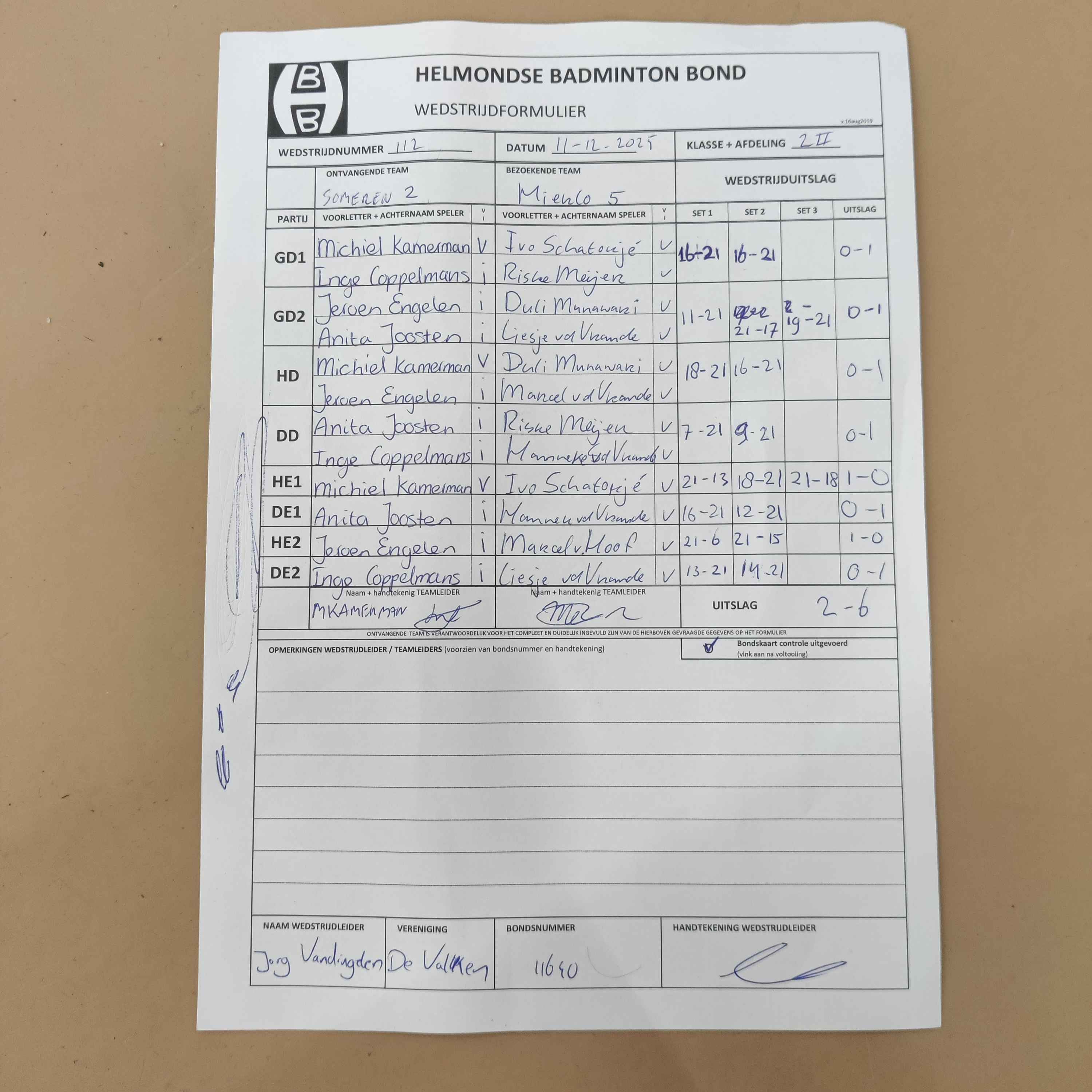 | 112 | do. 11-12-2025 | Someren 2 | - | Mierlo 5 | 12 | - | |||